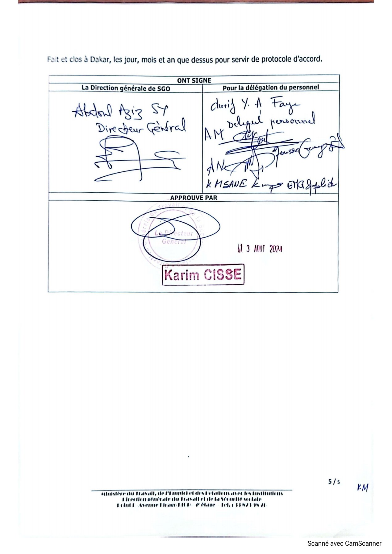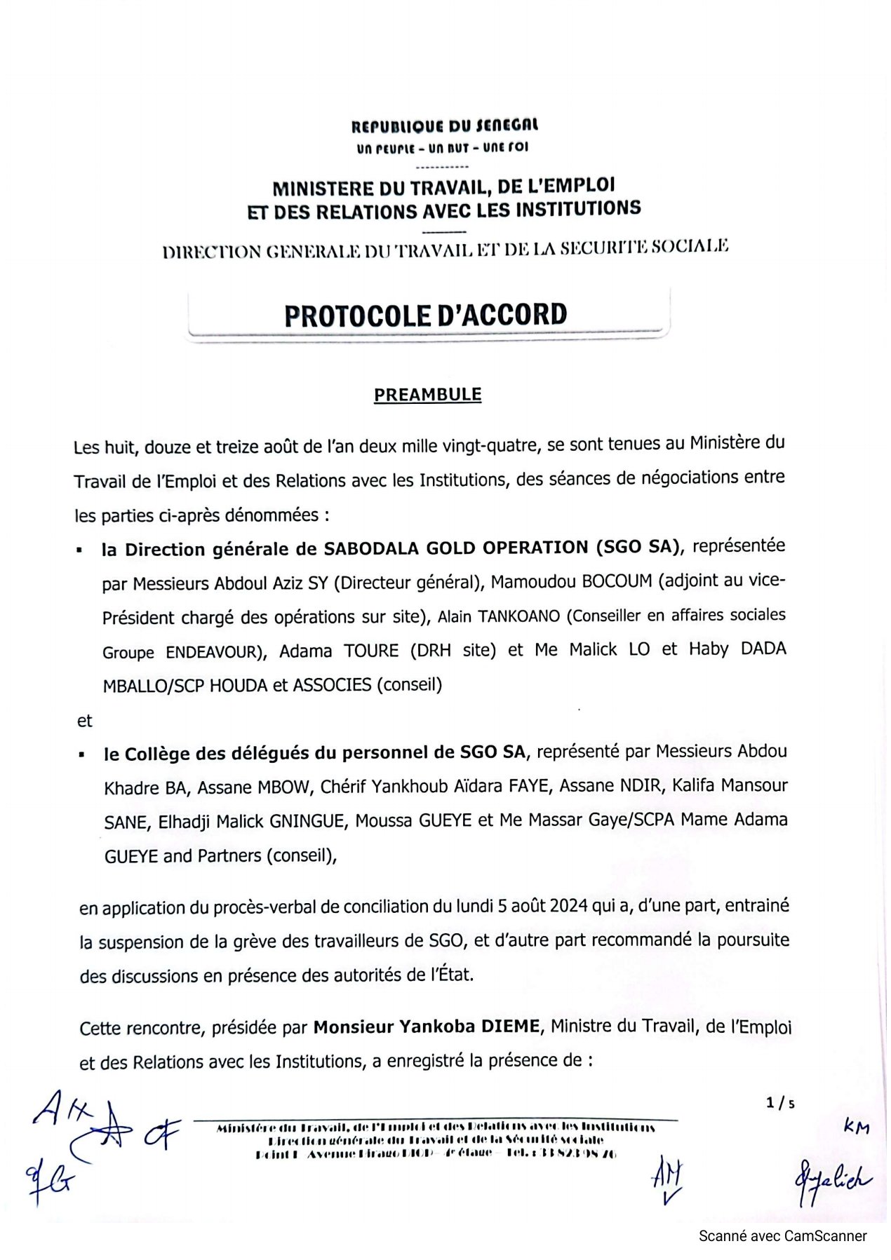 C’est le bout du tunnel qui est franchi aujourd’hui. Cette journée du mardi 13 aout 2024 restera mémorable pour les employés de la mine de Sabodala Gold Opérations car le protocole a été signé entre les deux parties (SGO-EMPLOYES) au ministère du Travail de l’Emploi et les Relations avec les Institutions. La Sgo représentée par son directeur Général Abdoul Aziz SY appuyé par son personnel et le collège des délégués de la SGO SA par Abdoul Khadre Ba et Cie. Les différents points débattus et paraphés par les deux parties occupés les points saillants de cette grève qui a débuté au mois de Juin-Juillet 2024. Quant à leur application des deadlines ont été établis compris entre Décembre 2024 à Décembre 2025. Les travaux ont été tenus devant les membres des ministres en charge du travail de l’emploi et des relations avec les instituions, de l’énergie, du pétrole et des mines.